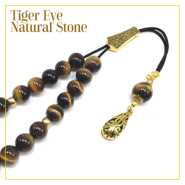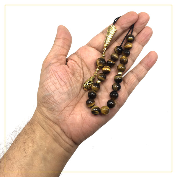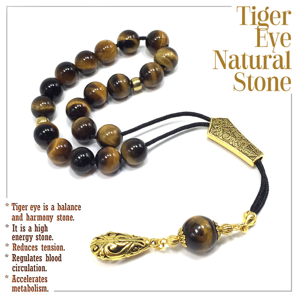 Greek KOMBOLOI Worry Beads Anxiety Beads Rosary Relaxation Stress Relief -TIGER EYE STONE BEADS -10mm Diameter-