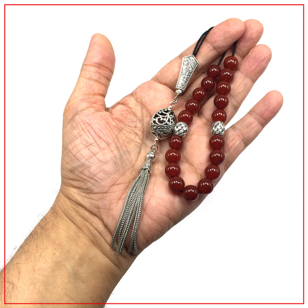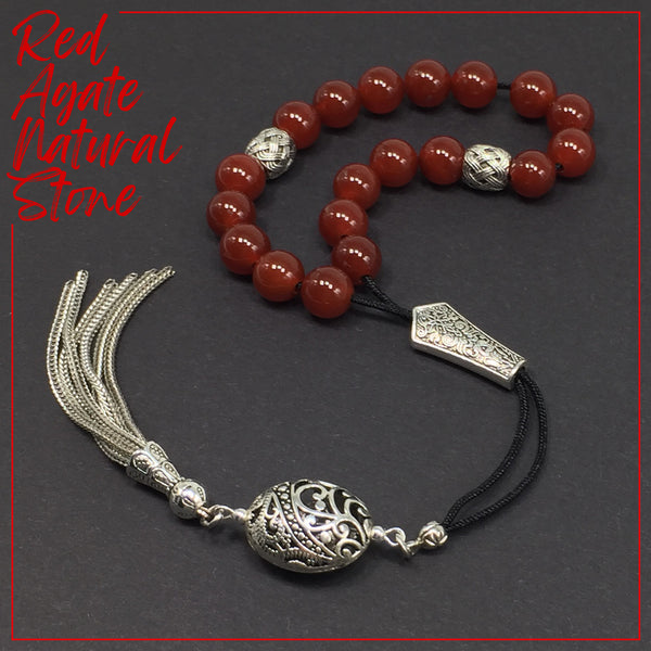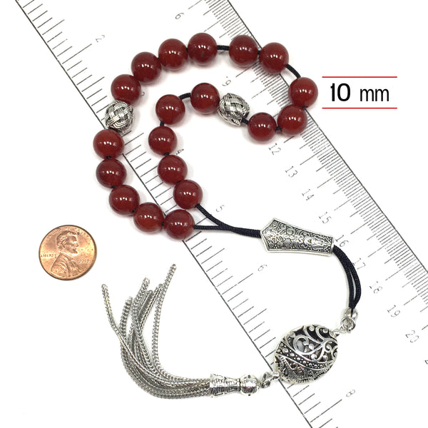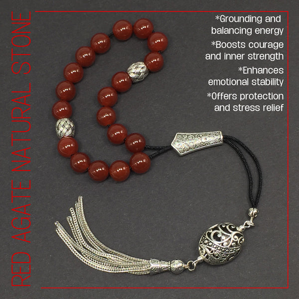 Greek KOMBOLOI Worry Beads Anxiety Beads Rosary Relaxation Stress Relief -RED AGATE STONE BEADS -10mm Diameter-