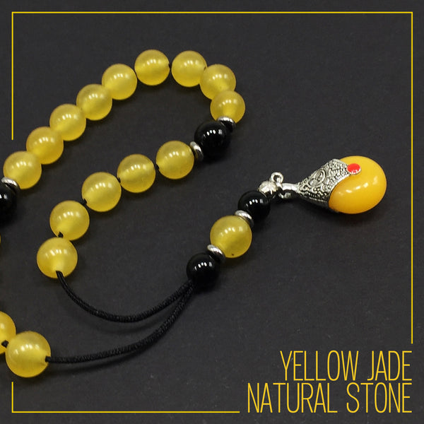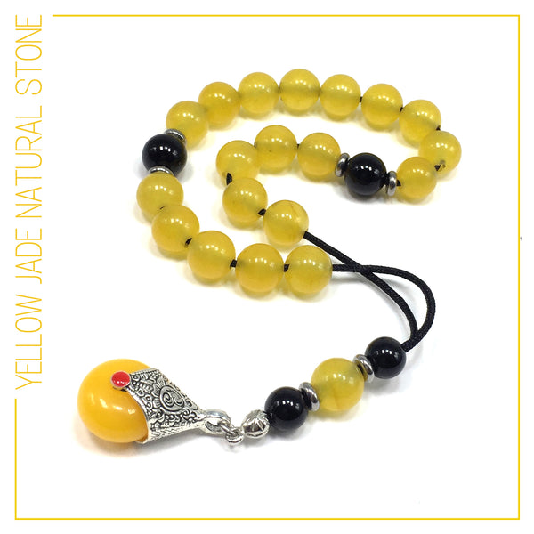 Greek KOMBOLOI Worry Beads Anxiety Beads Rosary Relaxation Stress Relief -YELLOW JADE STONE BEADS -10mm Diameter-